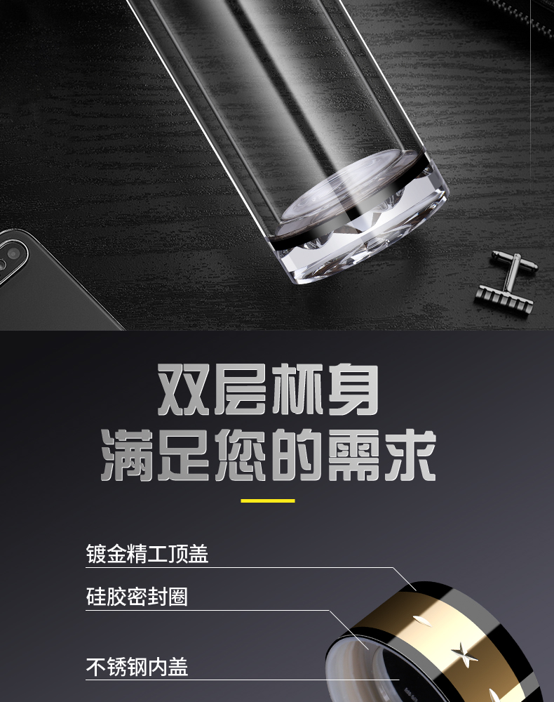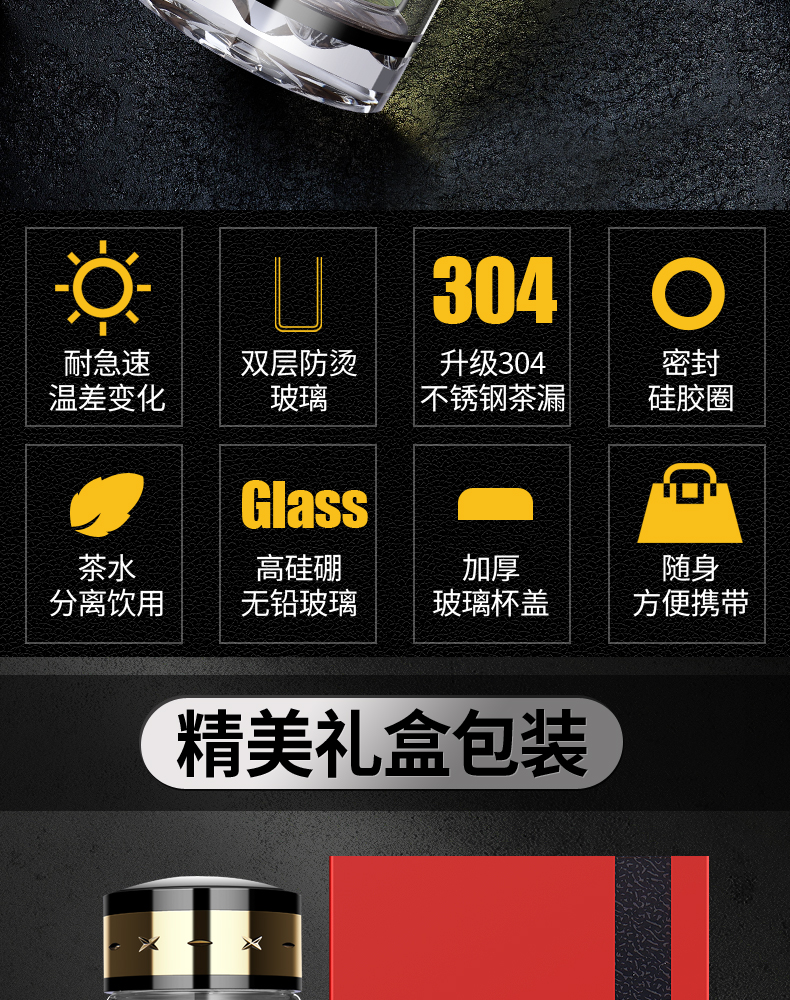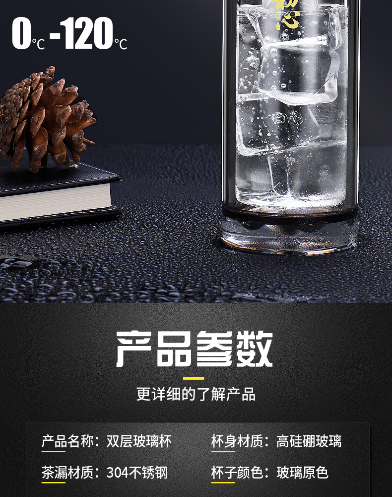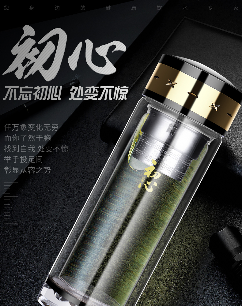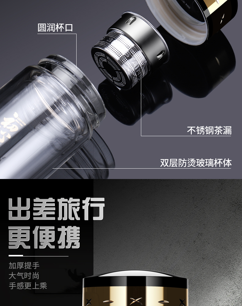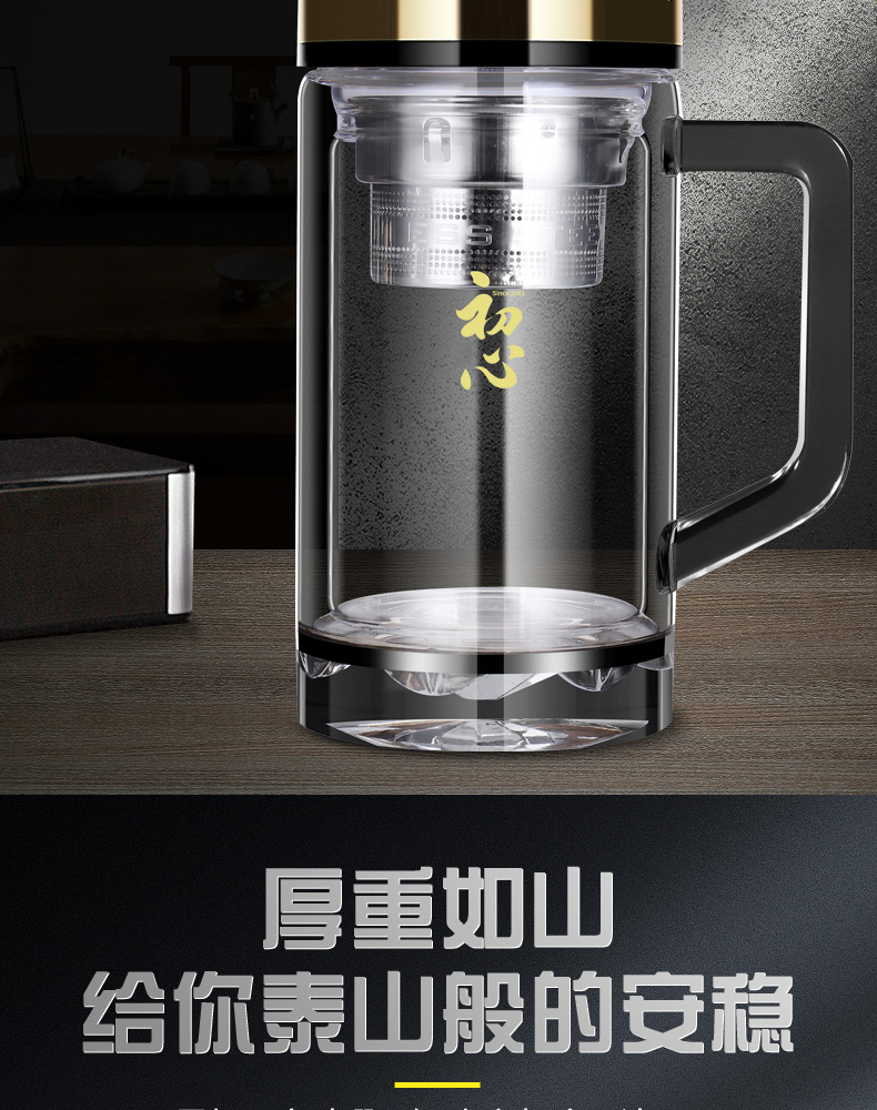 雙層玻璃杯男女便攜茶水分離耐熱加厚大容量高檔茶水杯子定制
