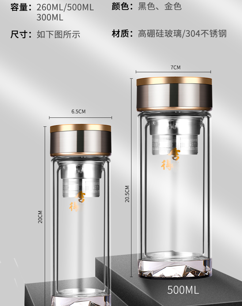 雙層加厚高檔玻璃杯男泡茶杯辦公車載耐高溫茶水杯子禮品定制